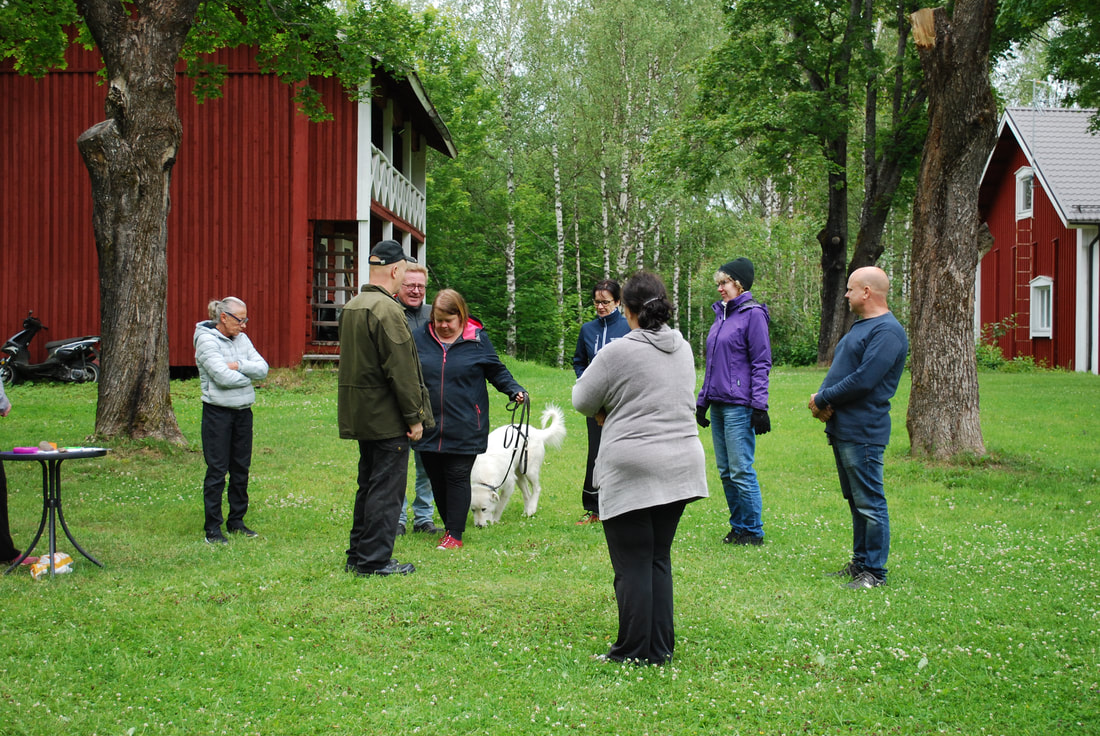 Tuomari kättelee koiran omistajan ja tarkastaa mikrosirun avustajan kanssa. Sitten omistaja koirineen pujottelee kuuden ihmisen muodostaman ihmisryhmän lomassa. Ihmiset seisovat ensin paikoillaan eivätkä tuijota koiraa. Seuraavaksi ihmiset alkavat liikkua, keskustelevat keskenään ja kättelevät koiran omistajaa. Lopuksi ihmiset muodostavat kehän koirakon ympärille.